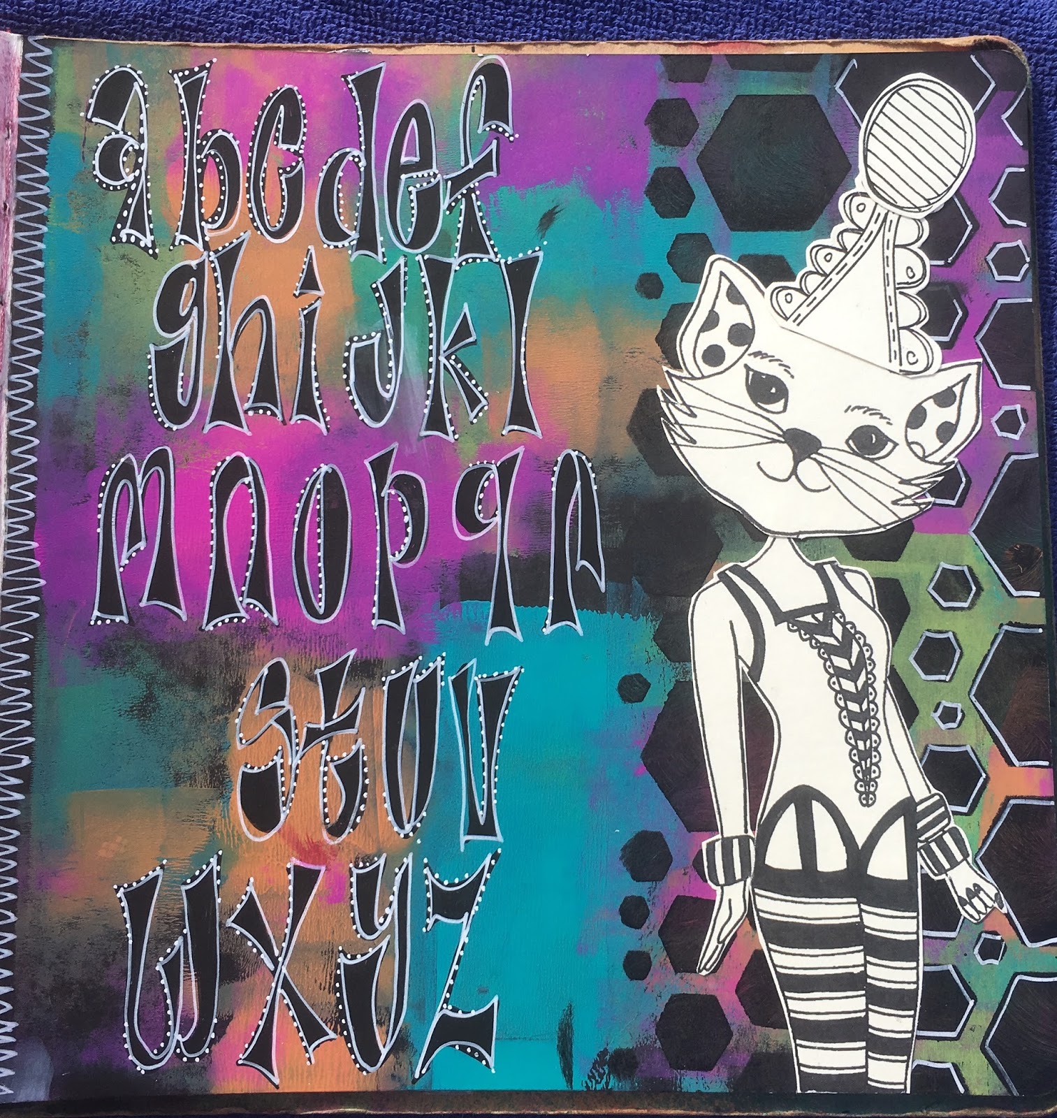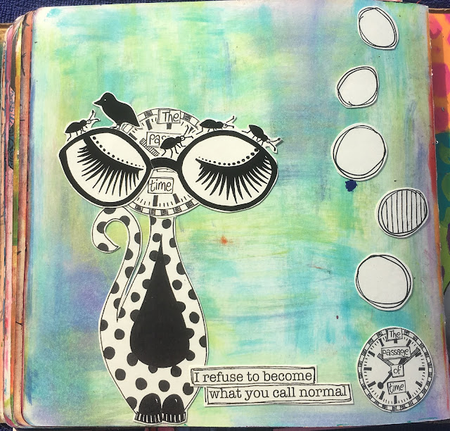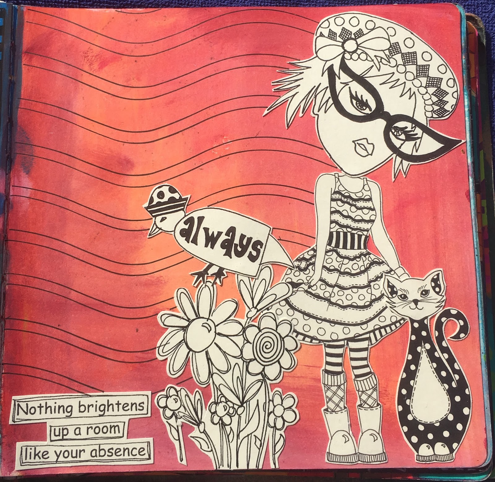 I will leave you with a page from my black journal, incorporating the Puddy Cat stamps from the latest release.