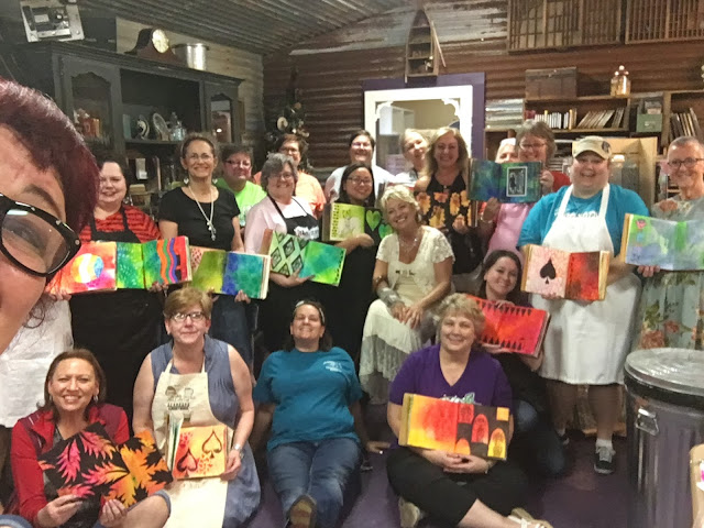 I was in Texas to teach at Big Mouth Scrappers, Forney. A fabulous treasure trove. Just look at the classroom area!!
