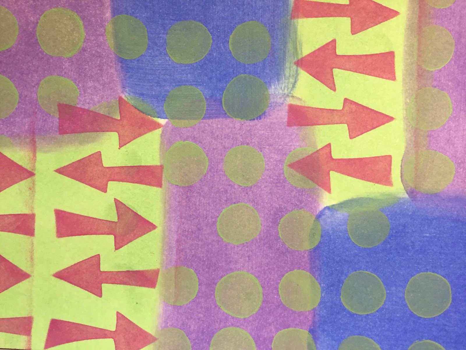 On a black journal insert page, We have stencilled the arrows straight onto the page in Rose Quartz and Vanilla Custard.