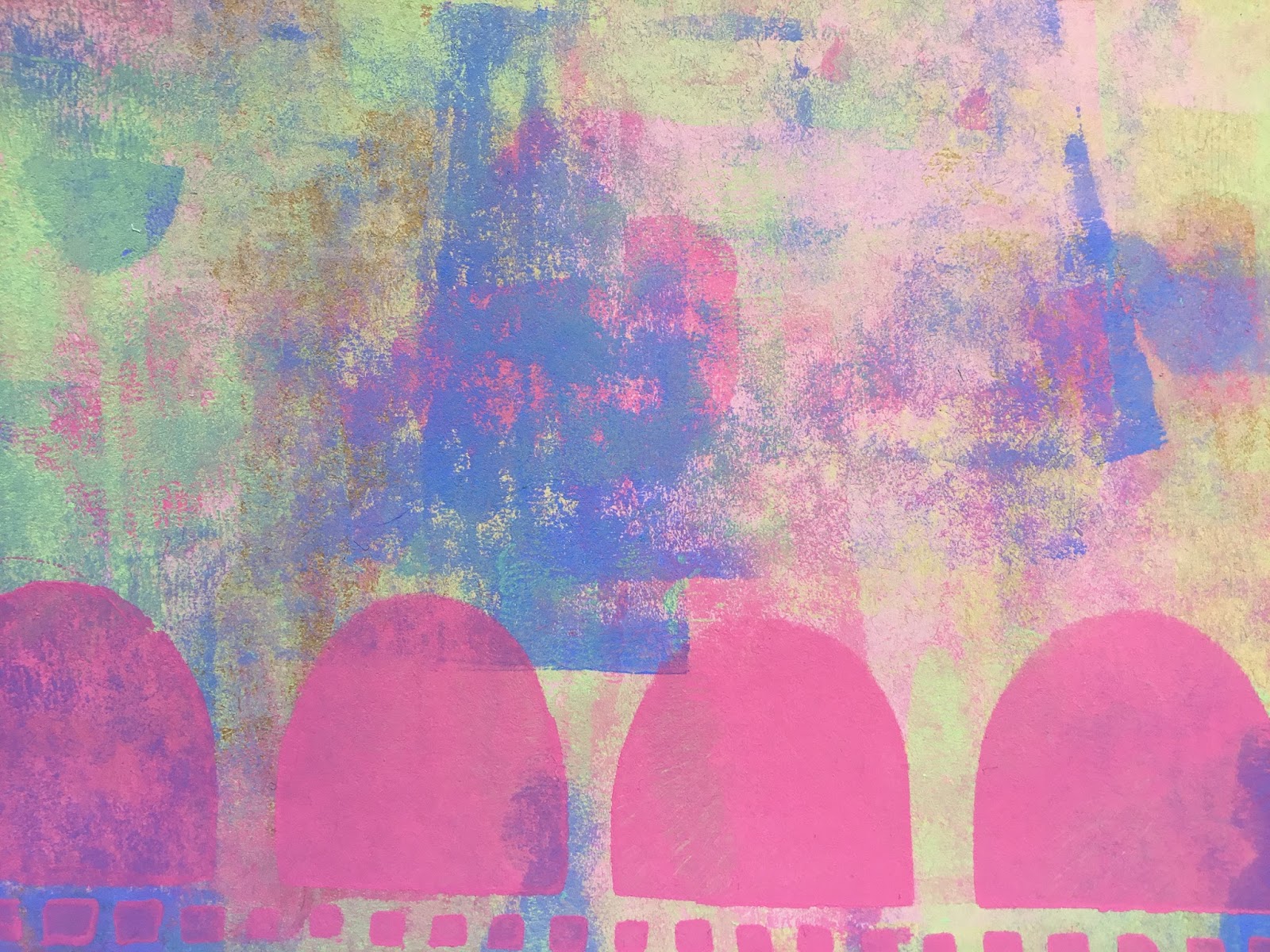 Next we have added layers of Vanilla Custard, Peony Blush, Periwinkle Blue, Rose Quartz, Laidback Lilac and Mushy Peas using a brayer.